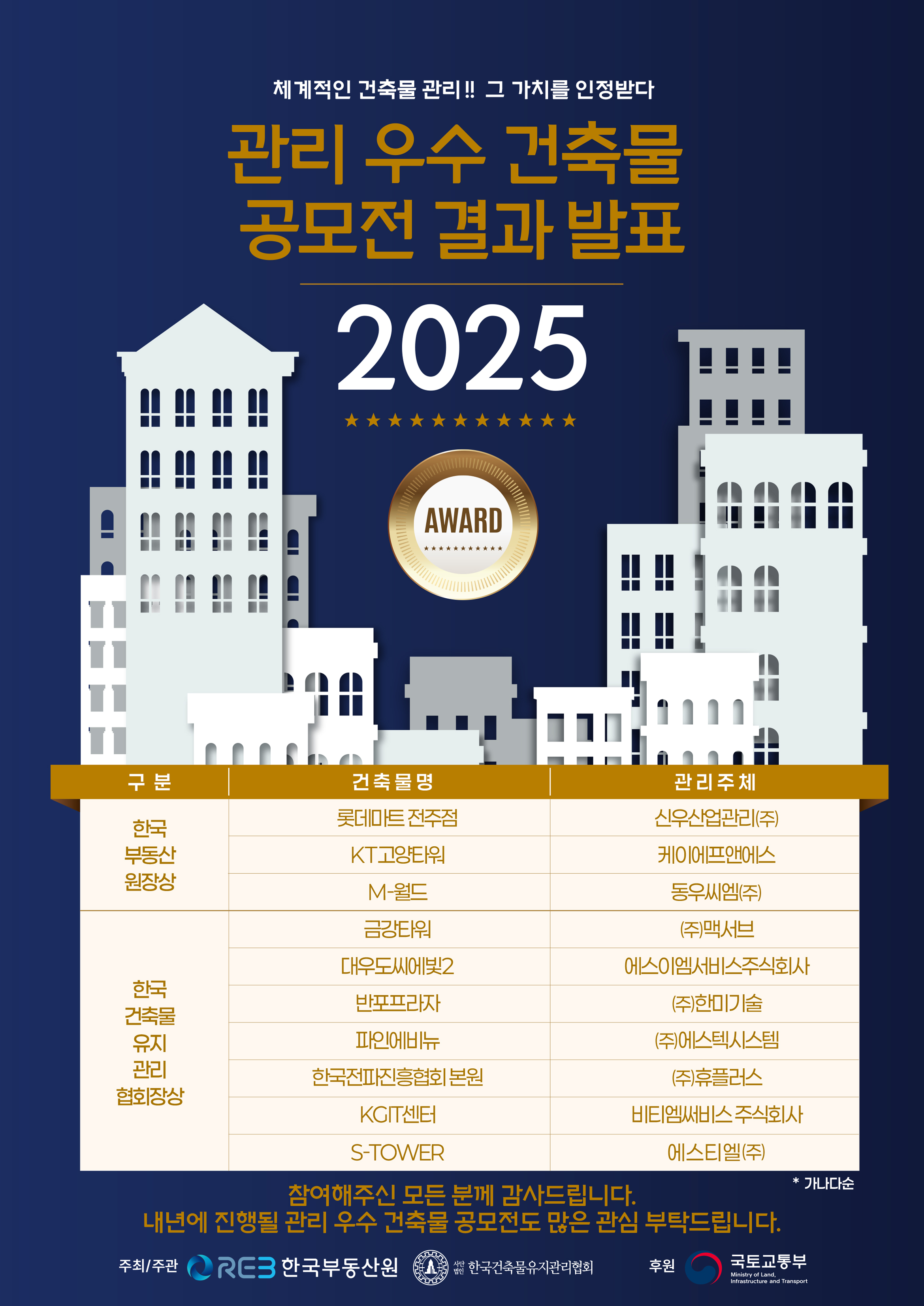 [발표] 2025년 관리 우수 건축물 공모전 결과 발표